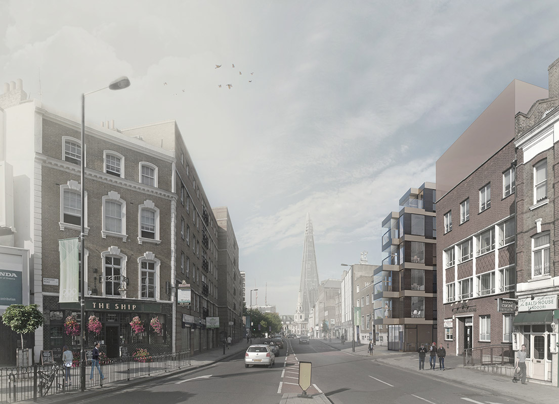 A new build mixed use scheme located at the South end of Borough High Street comprising two commercial units at ground and basement levels and five private residential units above.