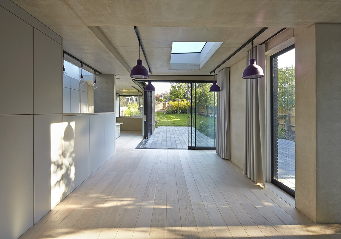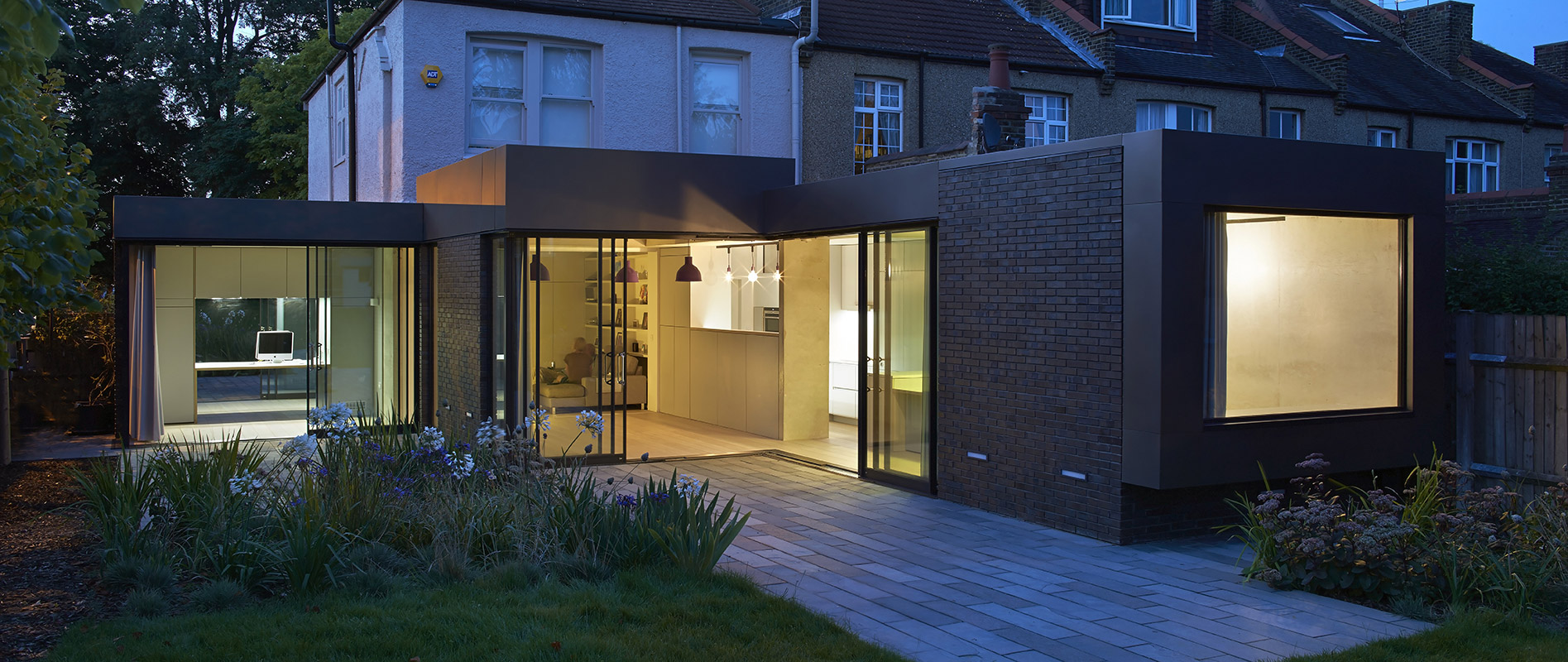 Located within a conservation area and the Dulwich Estate, and comprising a semi-detached period dwelling on a unique end of terrace site, the project involved the complete overhaul and modernisation of the existing house with the provision of three glazed interlocking new-build concrete extensions clad in dark brown brick and aluminium panels.